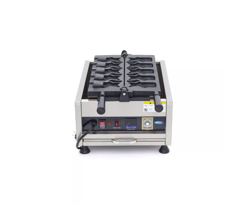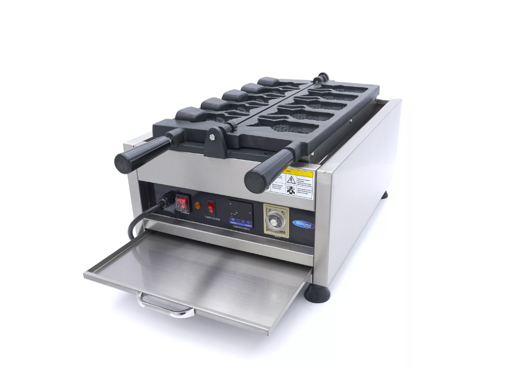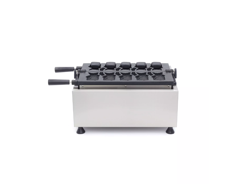 Cu acest aparat pentru vafe puteti coace usor si rapid 5 vafe in forma de peste. Aparatul pentru vafe este de inalta calitate si, datorita dimensiunii sale compacte, este ideal si pentru standurile de patiserie olandeza veche, piete si targuri.