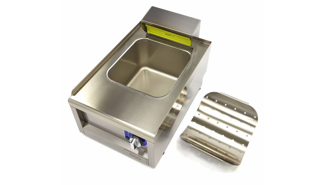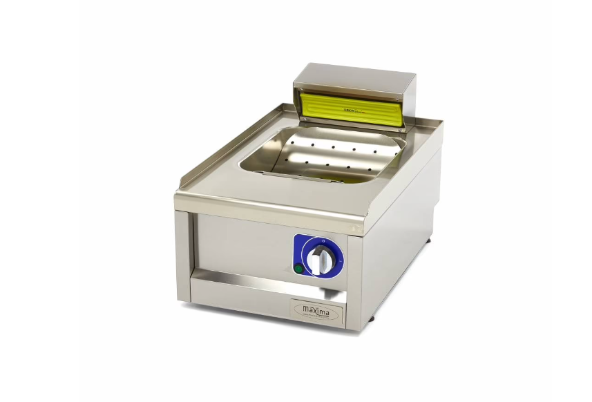 Puteți utiliza acest încălzitor profesional de cartofi prăjiți în combinație cu o friteuză. În acest fel, puteți colecta excesul de ulei de la cartofi prăjiți în vasul de 29 x 32 cm. Recipientul are o capacitate de 1 kg de cartofi prăjiți. Unitatea de încălzire are un element de încălzire cu infraroșu în partea din spate, care mărește durata de valabilitate a cartofilor prăjiți. Tava de colectare a grăsimii este fabricată din oțel inoxidabil ambutisat adânc și are colțuri rotunjite, astfel încât grăsimea, sarea și reziduurile alimentare nu se pot acumula în colțuri.